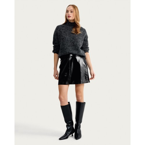 Faux Leather High Shine Mini Skirt in Black