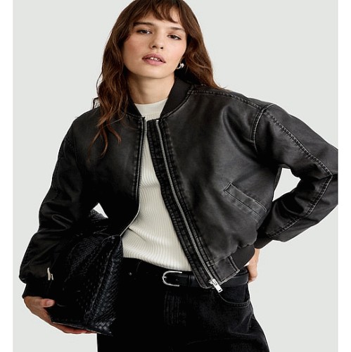 Faux Leather Bomber Jacket in Brown