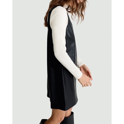 F&F Faux Leather Sleeveless Pinafore Dress in Black