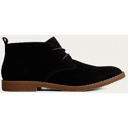 Faux Suede Lace Up Ankle Boots in Black