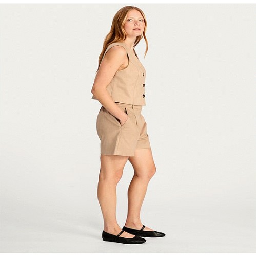 Faux Suede Tailored Pleated Co-ord Shorts in Tan