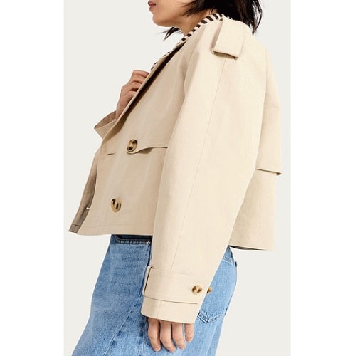 Double Breasted Cropped Trench Jacket in Neutral