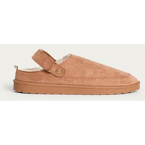 Faux Suede Borg Lined Chunky Mule Slippers in Tan