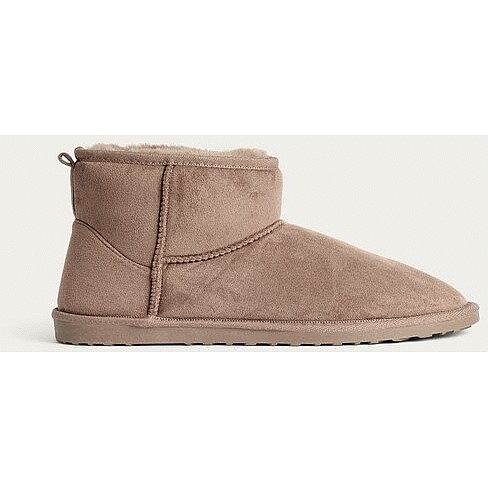 Faux Suede Fur Lined Water Repellent Boot Slippers in Mink