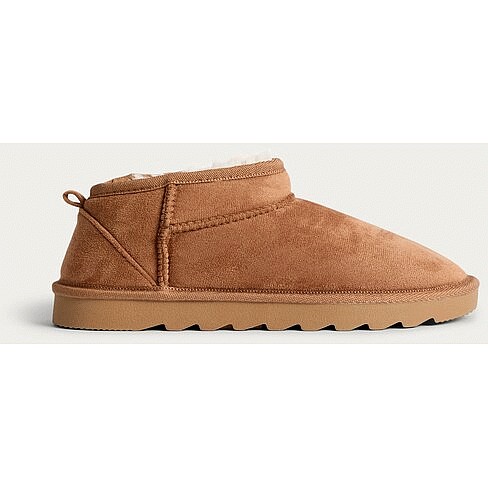 Faux Suede Fur Lined Ankle Boot Slippers in Tan