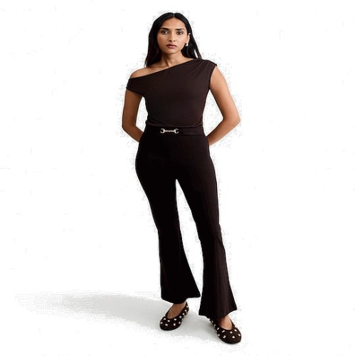 F&F Flared Gold Chain Buckle Trousers in Chocolate