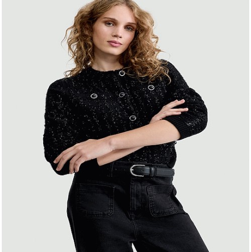 F&F Girls Fluffy Bow Detail Cardigan in Black