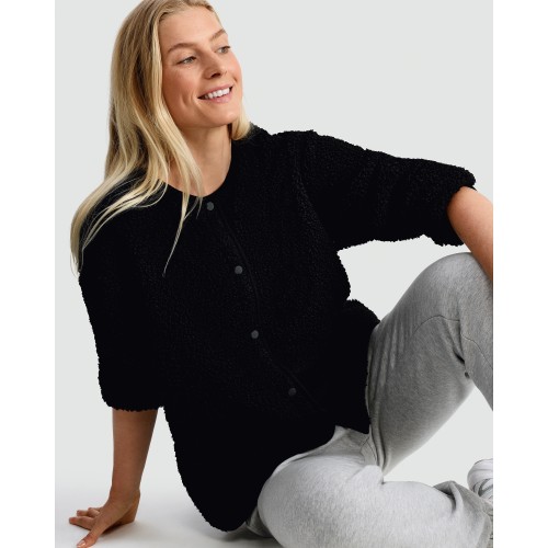 Fleece Button Up Pyjama Cardigan in Black