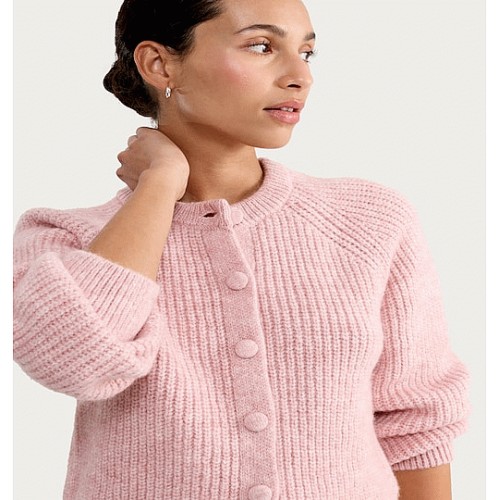 Pure Cotton Knitted Button Front Hooded Cardigan in Multi Pink