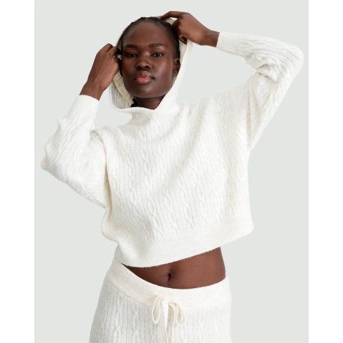 Cable Knit Pyjama Hoodie in Cream