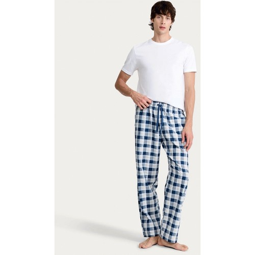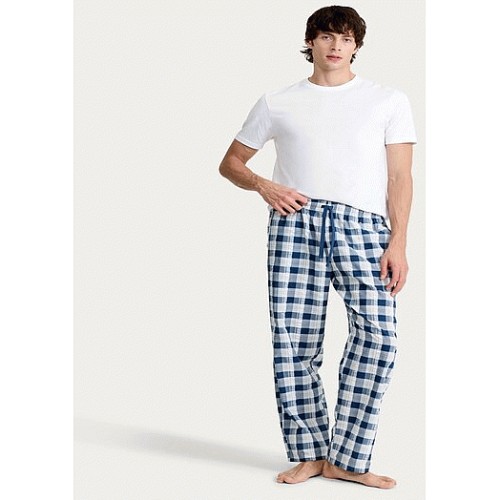 Check Print Fleece Pyjama Bottoms in Navy