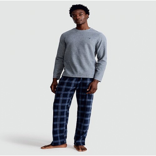 Fleece Check Print Long Sleeved Pyjamas in Grey