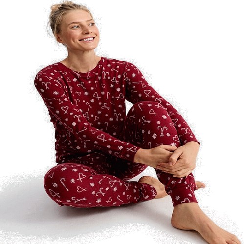 Textured Candy Cane Print Top and Bottoms Pyjamas in Red
