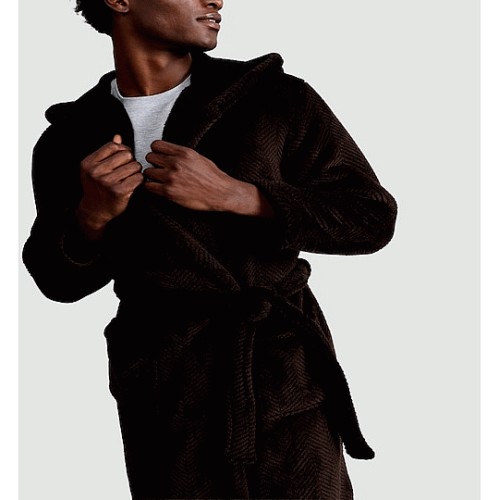 Fleece Textured Hooded Bear Ear Dressing Gown in Brown