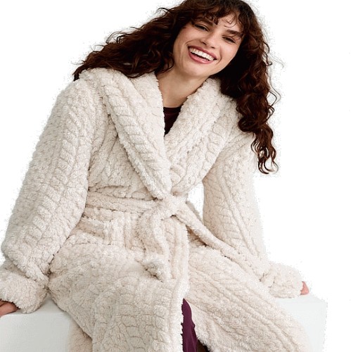 Fleece Cable Knit Hooded Dressing Gown in Cream
