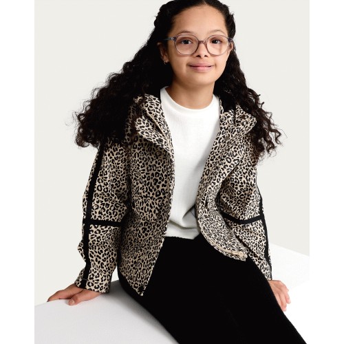 F&F Girls Leopard Print Hooded Jacket in Multi Brown