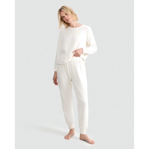 Fleece Cable Texutred Top and Cuffed Bottoms Pyjamas in Cream