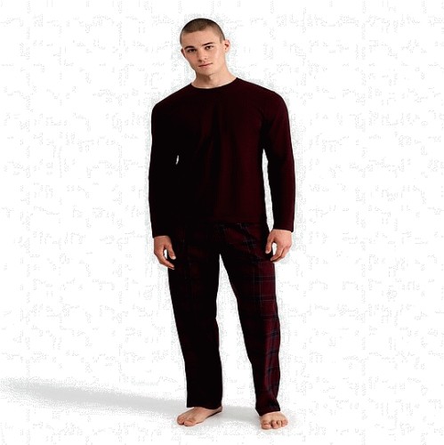 Long Sleeved Fleece Check Print Pyjamas in Burgundy