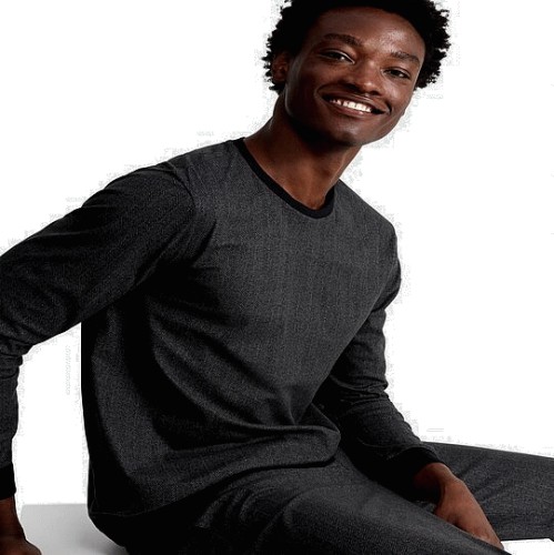 Fleece Herringbone Print Top and Joggers Pyjamas in Grey