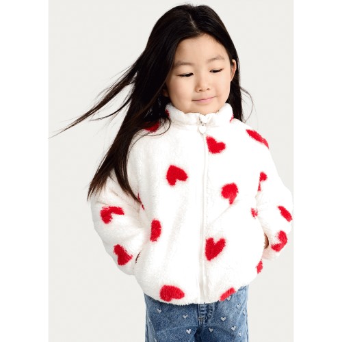 F&F Girls Fleece Textured Heart Print Zip Up Jacket in Cream