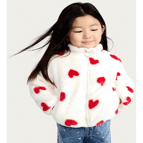 F&F Girls Fleece Textured Heart Print Zip Up Jacket in Cream