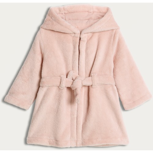 Fleece Belted Hooded Dressing Gown in Pink