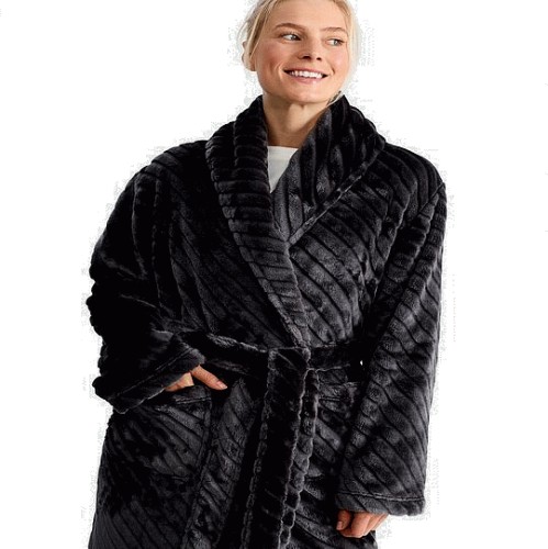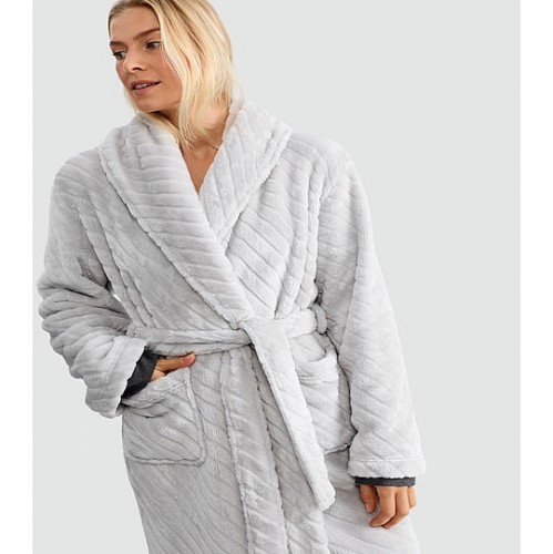 Fleece Chevron Textured Dressing Gown in Grey