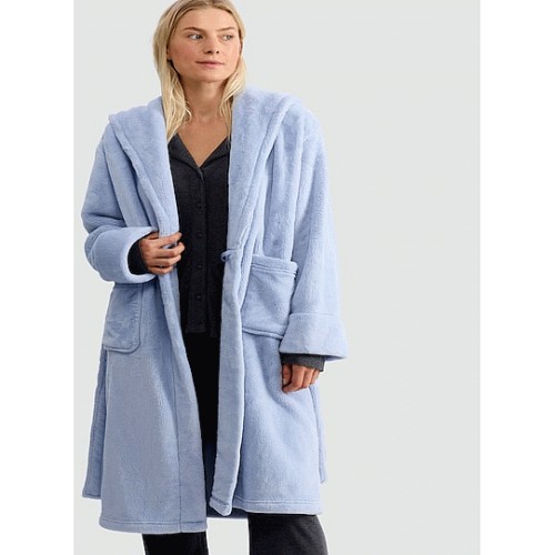 Fleece Hooded Dressing Gown in Blue