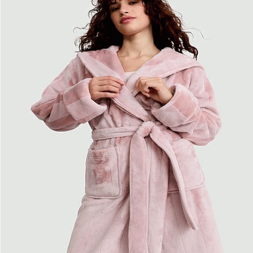 Fleece Stripe Hooded Dressing Gown in Pink