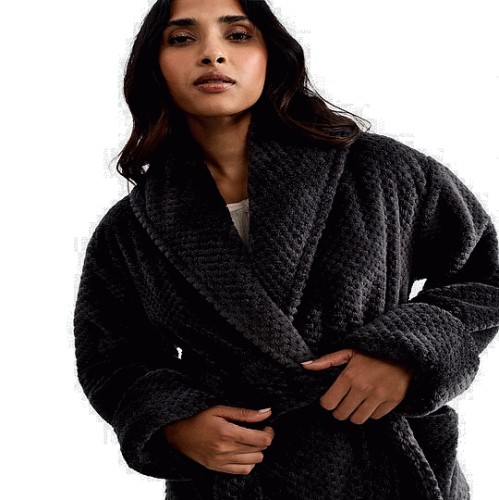 Fleece Honeycomb Textured Dressing Gown in Grey