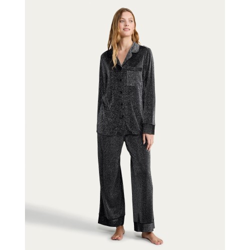 Textured Shimmer Shirt and Bottoms Pyjama Set in Grey