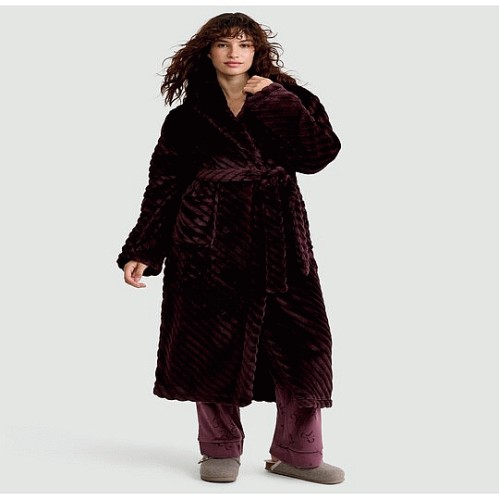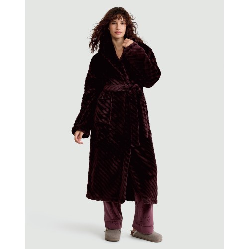 F&F Fleece Textured Striped Dressing Gown in Grey