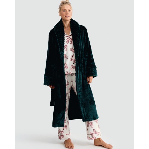 Fleece Honeycomb Textured Dressing Gown in Grey