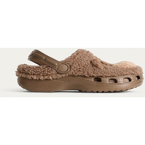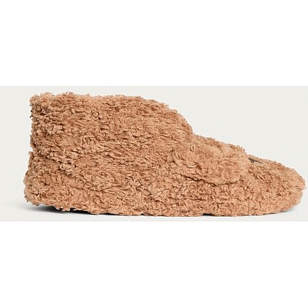 Curtis The Dog Textured Fleece Teddy Bear Slippers in Brown