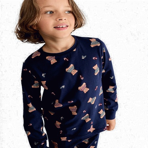 Teddy Bear Print Matching Family Christmas Pyjamas in Navy