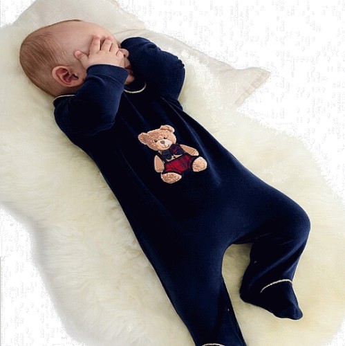 Cotton Rich Velour Teddy Bear Sleepsuit in Navy