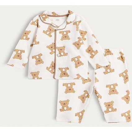 Pure Cotton Teddy Bear Print Pyjama Set in White