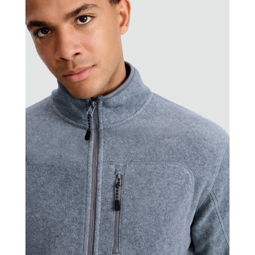 Fleece Zip Up Pocket Detail Jacket in Grey Marl