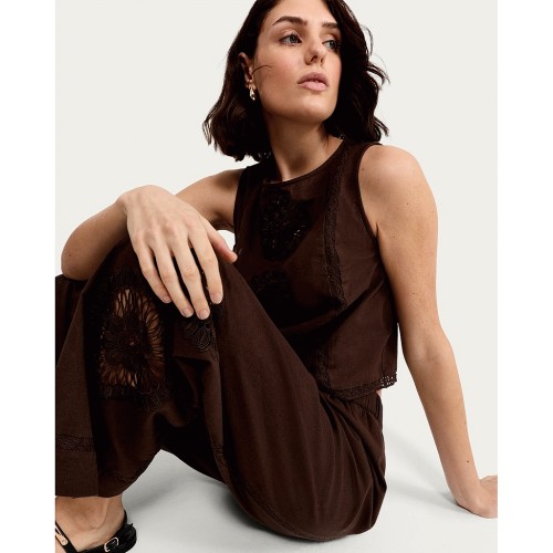 Embroidered Sleeveless Co-ord Beach Blouse in Brown