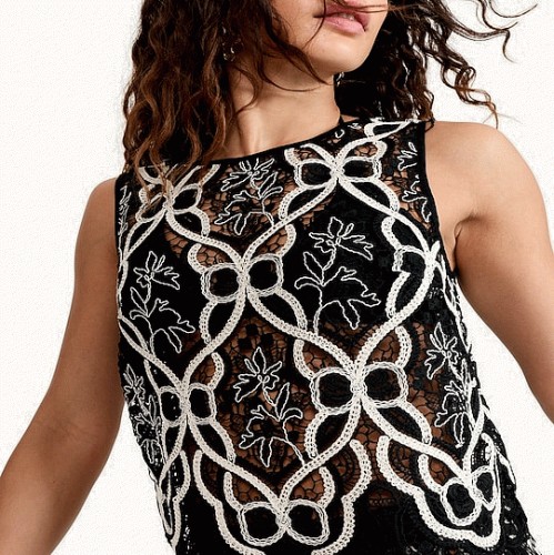 Embroidered Lace Sleeveless Co-ord Top in Multi Black White