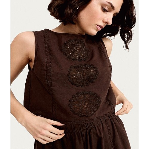Floral Embroidered Sleeveless Beach Dress in Multi Brown