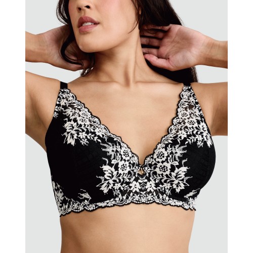 Fuller Bust Floral Lace Detail Underwired Plunge Bra in Black