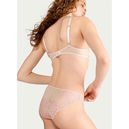 Floral Lace Mesh Brazilian Knickers in Pink