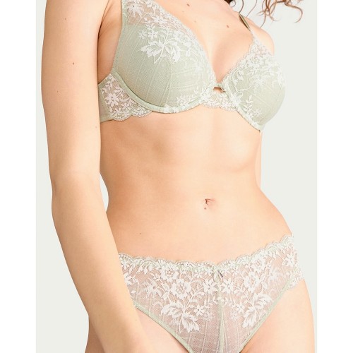 Floral Lace Mesh Thong in Green