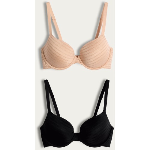 2-Pack Subtle Striped Underwired T-Shirt Bra in Black