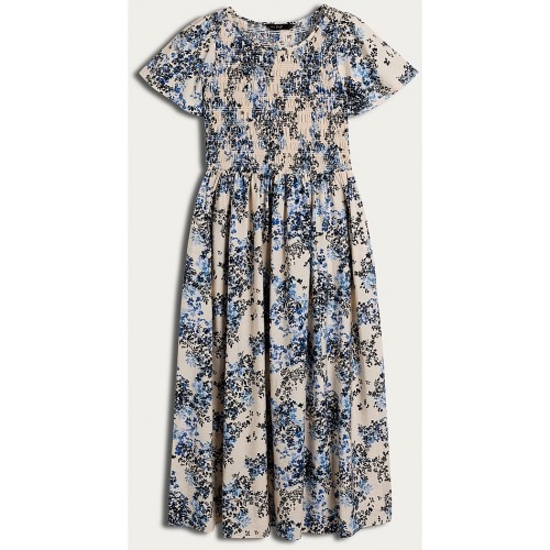 Cotton Rich Floral Print Sweat Dress in Blue