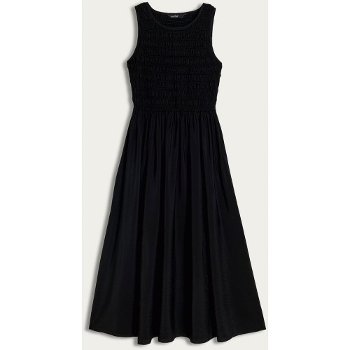 Shirred Sleeveless Midi Dress in Black