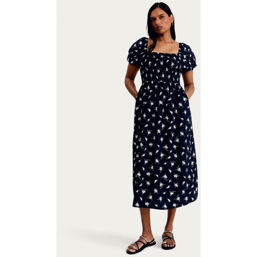 F&F Floral Print Shirred Angel Sleeved Midi Dress in Multi Blue