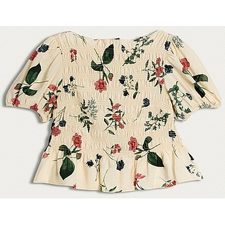 Floral Print Shirred Peplum Top in Cream