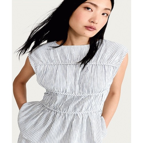 Floral Print Shirred Peplum Hem Blouse in Multi Blue